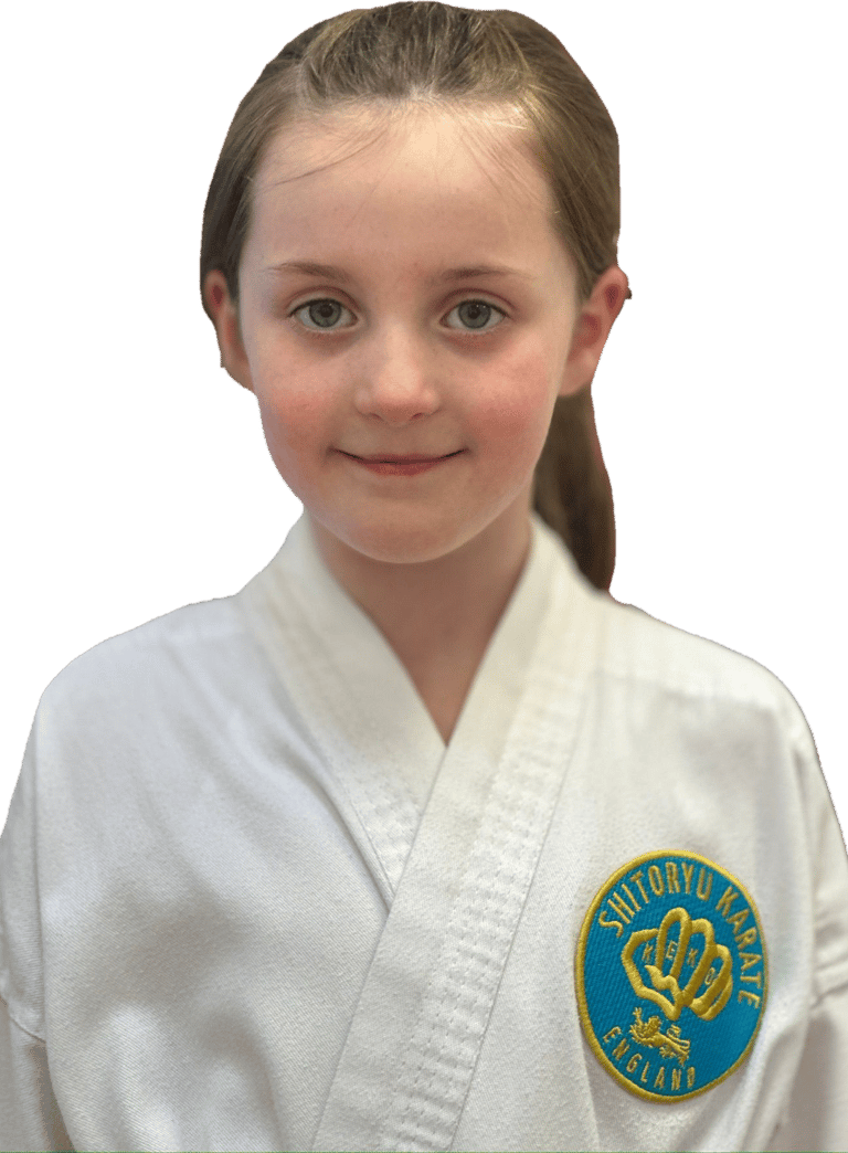 Evie started in October 2024 and is currently a green belt working towards her purple grading, Evie may be small but she is mighty, don’t underestimate Evie she is fully committed to her karate training two hours a week, Evie is always polite, listens and executes her karate to her best ability, don’t mess with this little pocket rocket she is someone to look out for in the near future.